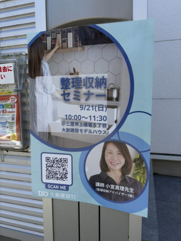 9/21(日)、三鷹市上連雀5丁目のモデルハウスにて「整理収納セミナー」が開催されました。