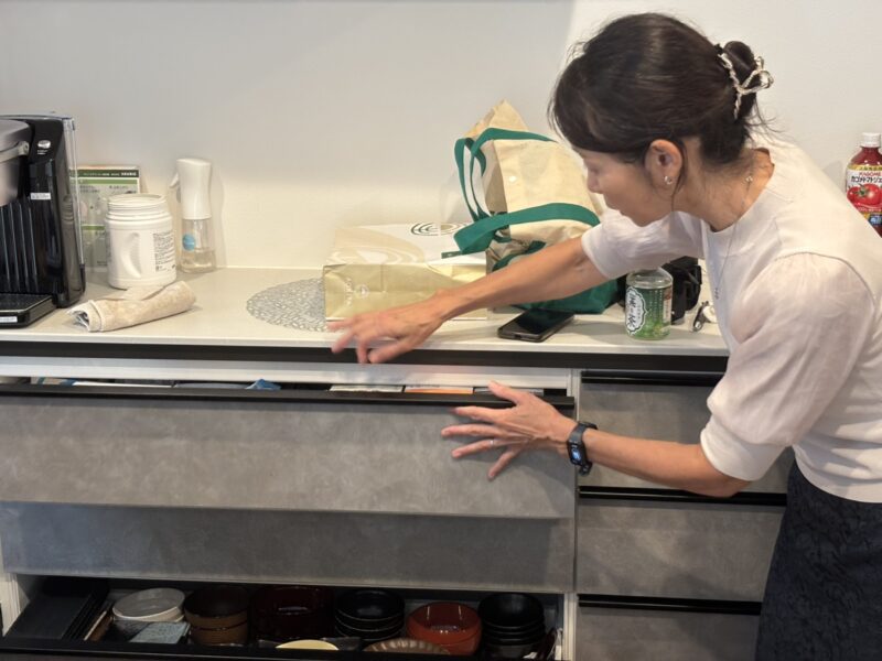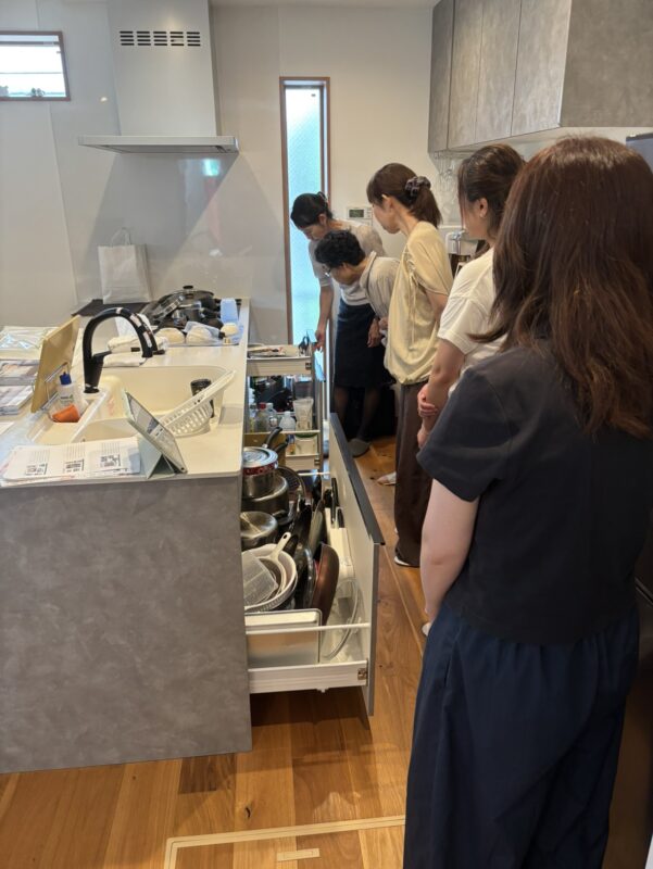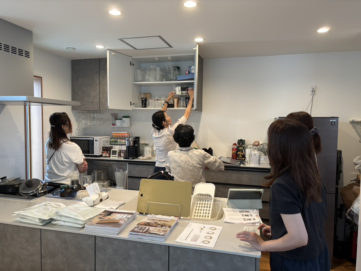 講座のお話終了後は、モデルハウスのキッチンを例に具体的にどうしたら整理収納できるのかレクチャー頂けました。