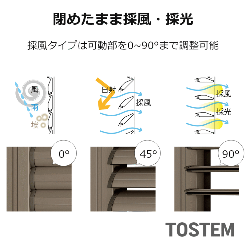 ☆採風タイプは可動部を0度~90度まで調節可能。