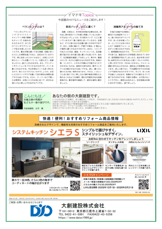 大創建設<住まいのかわら版>2025.11月号 暮らしをちょっとラクにする知恵を集めました! 「炭酸水を活用しよう!」 炭酸水には良いことがたくさん! 気軽に自分で炭酸水が作れる様なので、私も試してみたいです。 普段の暮らしに取り入れてみてはいかがでしょうか?