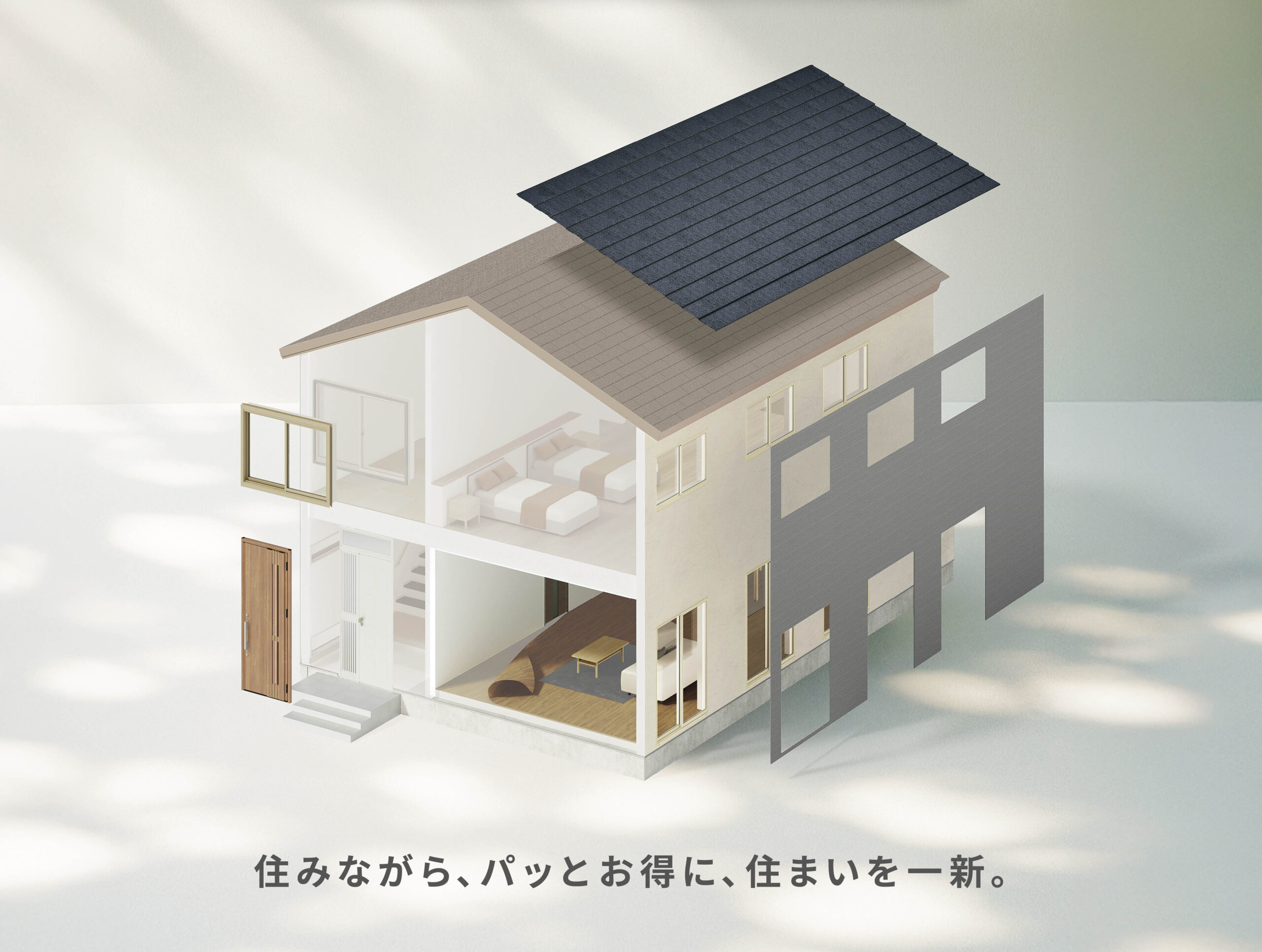 仮住まいや引越しの必要もなく、わが家を、パッと手軽に、快適で美しい住まいに一新できます。