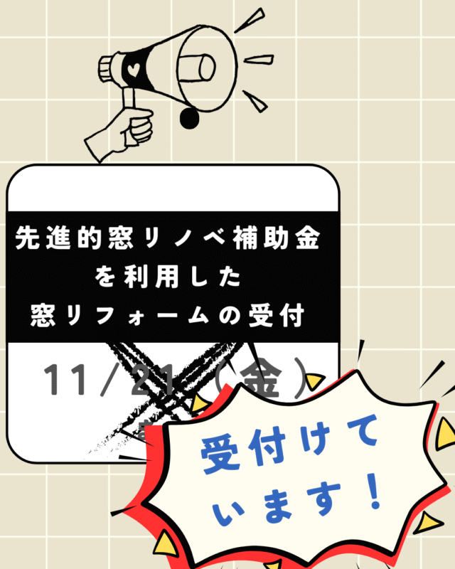 11/21までとアナウンスしていた【先進的窓リノベ補助金を利用した窓のリフォーム】を再度受付中です!