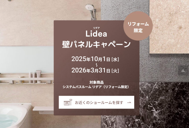 LIXIL | 浴室 | リデア壁パネルキャンペーン 壁パネルのグレードアップがお得です! お風呂の壁柄が変わるだけで全く別の印象に! この機会に素敵なお風呂にしてみませんか? お問い合わせお待ちしております。 大創建設