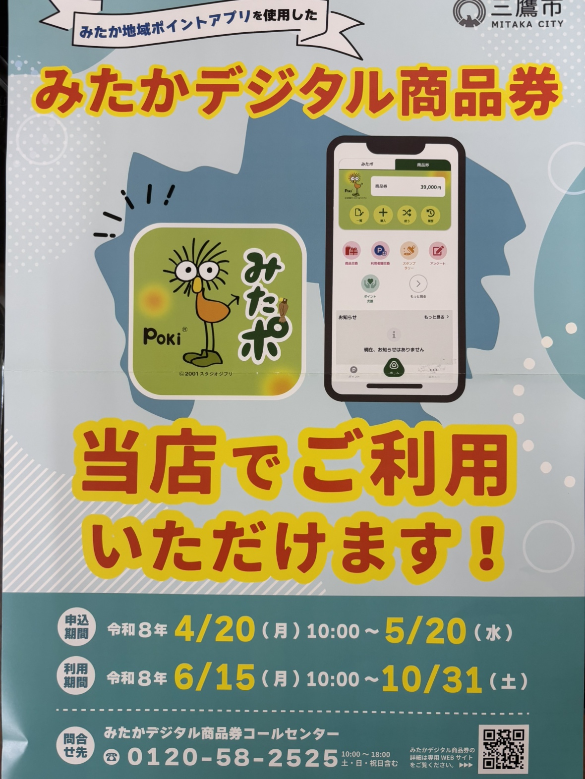 本日4/20(月)から「みたかデジタル商品券」の購入申し込みが始まりました!(もちろん私も申込済みです!!) 大創建設も参加店舗です! 是非この機会に「みたかデジタル商品券」をご購入後、リフォームなどいかがでしょうか? 詳細はコチラ☆ 30%上乗せされるのはとてもお得ですね! 大創建設