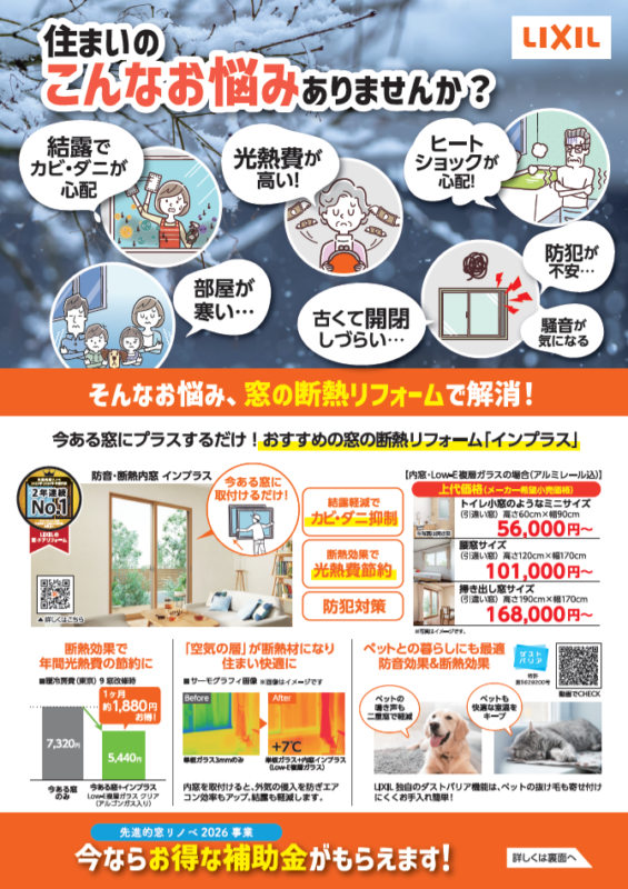 住まいのこんなお悩みはありませんか? ✔結露でカビ・ダニが心配 ✔光熱費が高い ✔ヒートショックが心配 ✔部屋が寒い ✔窓が古くて開閉しづらい ✔防犯が不安 ✔騒音が気になる・・・・・etc. これらは、「窓の断熱リフォ […]