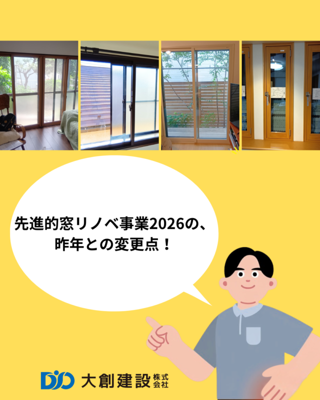 <先進的窓リノベ2026事業の、昨年との変更点について> 【POINT】特大サイズの追加→テラス窓でこれまで以上の高額補助(^^) 窓の改修と同一契約内のドアの改修も対象になりました(^^) 【注意】内窓Aグレ […]