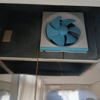 マンション上階からリビングに漏水が発生したため、リビング天井のボード、クロスの張替、吊戸棚の交換、換気扇の交換のご依頼を頂きました。また、壁もタイル張りだったので、キッチンパネルの設置のご要望を頂きました。漏水とは別に、トイレ本体と洗面化粧台の交換のご依頼も頂きました。